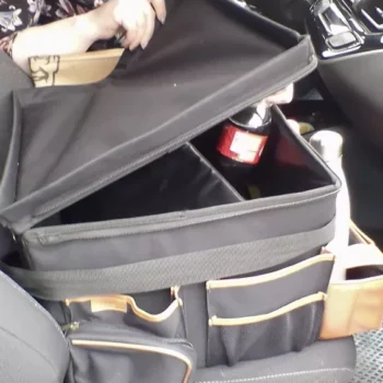 Now this is my favorite car organizer! I received my order a month ago. I purchased this to keep in the back seat with my son. Inside, I stored everything that was lying in my car and didn't have its place. And I use the pockets to store my son's toys, snacks and drinks. So convenient! My son also loves the lid and uses it as a table. High-quality, stylish, and really versatile organizer! Thanks a lot!