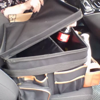 this car seat organizer is ideal for families with two children. we have twins and each now has toys, pens, gadgets, and other stuff on their side. on the lid they draw and play together. pockets on the front for both their drinks. it's a WOW, thanks a lot