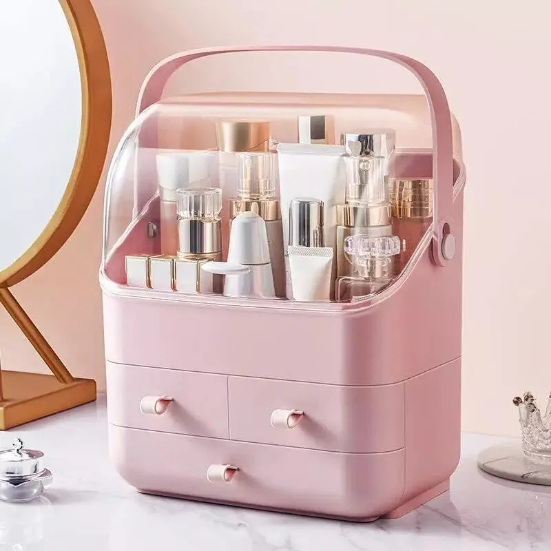 Cosmetic Storage Box stands out with its premium PET material, elegant design, and thoughtful features. The two-way flip clear lid, large capacity storage, and portable handle make it a must-have for beauty enthusiasts. The dustproof and waterproof cover ensures your cosmetics stay tidy and clean, adding a touch of luxury to your beauty routine.