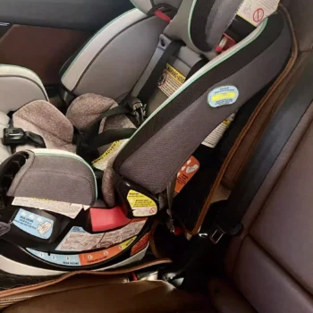 the protector fits our car very well, don’t move or roll down the seat when driving. my child seat is firmly attached so everything looks safe