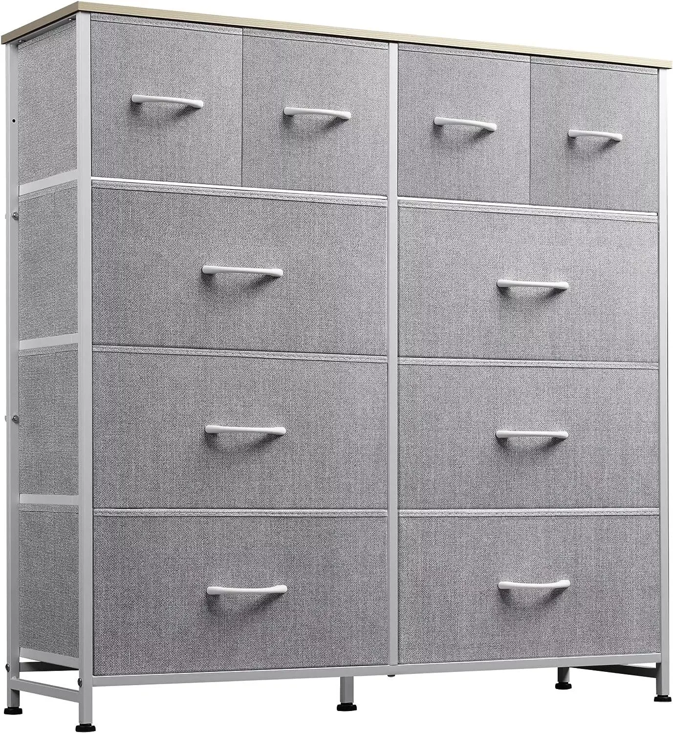Aside from its ample storage and versatile use, what sets this dresser apart is its commitment to quality and design. The combination of a strong steel frame, water-resistant top, and durable fabric drawers offers both functionality and style. The easy assembly, with detailed instructions and all necessary hardware included, ensures you can enjoy your new storage solution with minimal fuss.