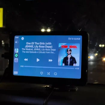While still in the early days of use, my preliminary tests in the driveway have shown this gadget to perform even better than my wife's built-in car system. Unlike her setup, I appreciate not needing a direct connection to access its features. Audio playback can be routed through the device's screen or the car's speakers, depending on my preference. The only drawback is the absence of an AUX input in my car, requiring me to rely on FM transmission for audio.